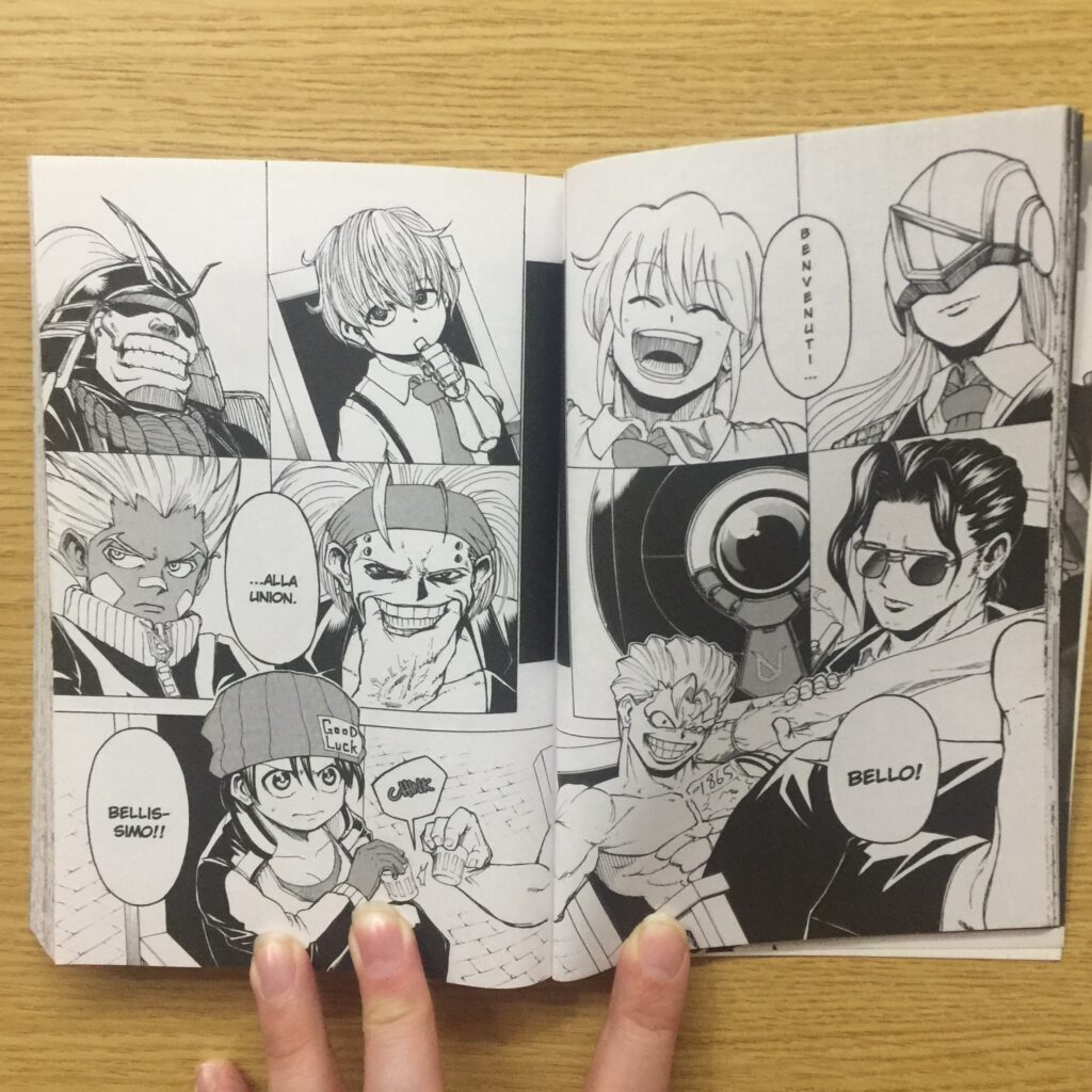 Tra il primo e il secondo volume di Undead Unluck vediamo quindi i nostri protagonisti affrontare i negator per entrare in Union. Se la dovranno vedere con Void, all’apparenza indistruttibile e senza alcun punto debole, in coppia con il cinese Shen, dai misteriosi poteri e che trova esilarante questa strana coppia; e poi Gena, donna dall’aspetto di una ragazzina, immutabile da decenni e innamorata persa di Andy. Ma far parte di Union non è facile, anzi. Il libro Apocalypse affida ai 10 membri delle missioni che portano ricompense e punizioni a secondo della loro riuscita.