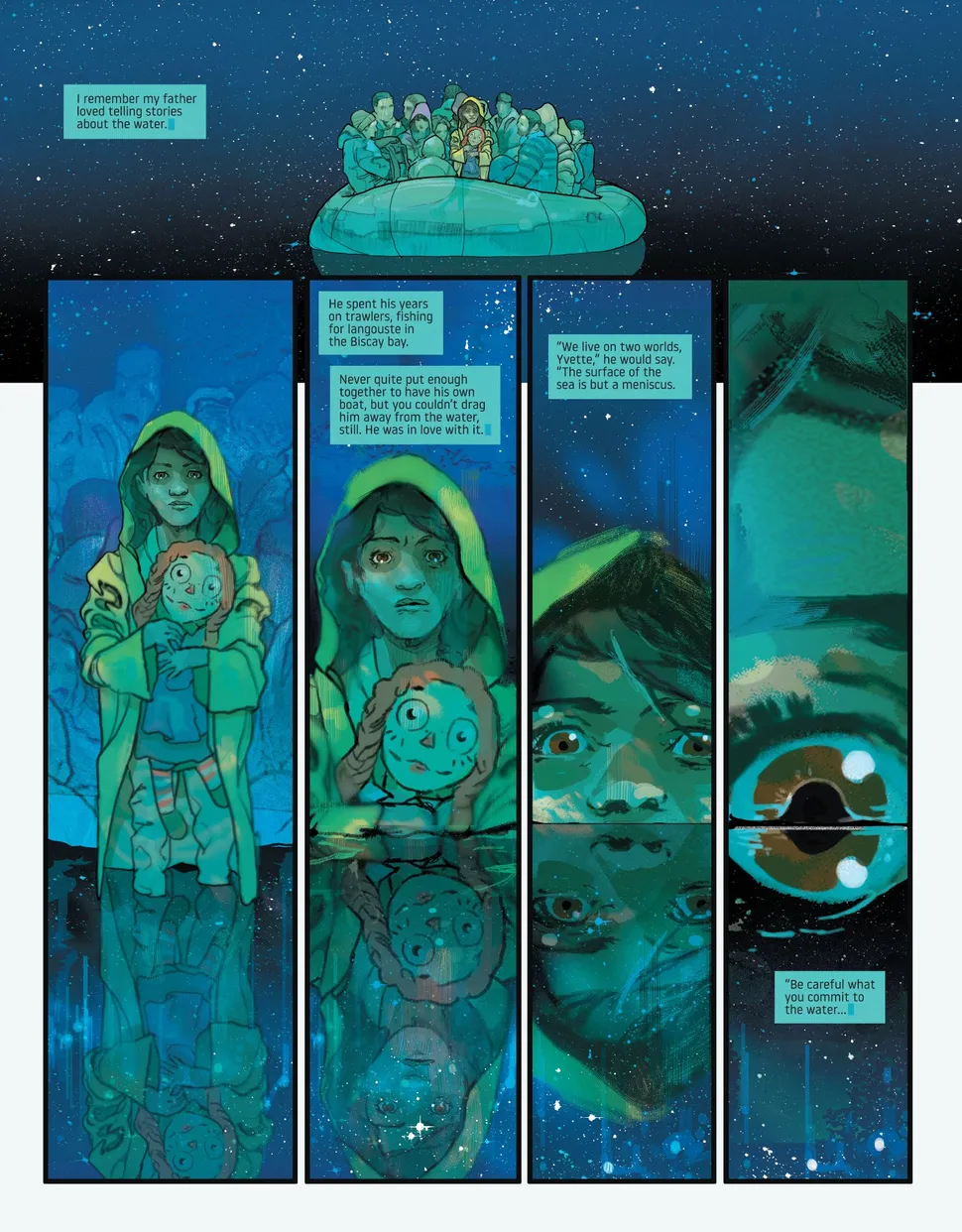 Nelle pagine, una giovane ragazza ha un incontro crudo e onirico con l’oceano, ad indicare che sotto l’acqua si nasconde qualcosa che va oltre la normale percezione.
