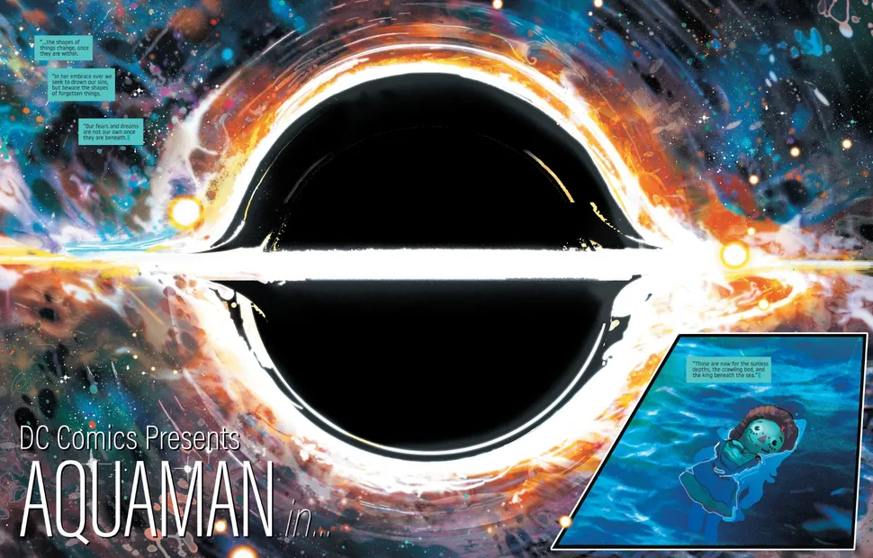 La DC ha pubblicato un’anteprima delle pagine interne di Aquaman: Andromeda #1, che abbina la narrazione inquietante e quasi poetica di V, affidata al letterista Aditya Bidikar, con l’arte decisamente psichedelica di Ward.