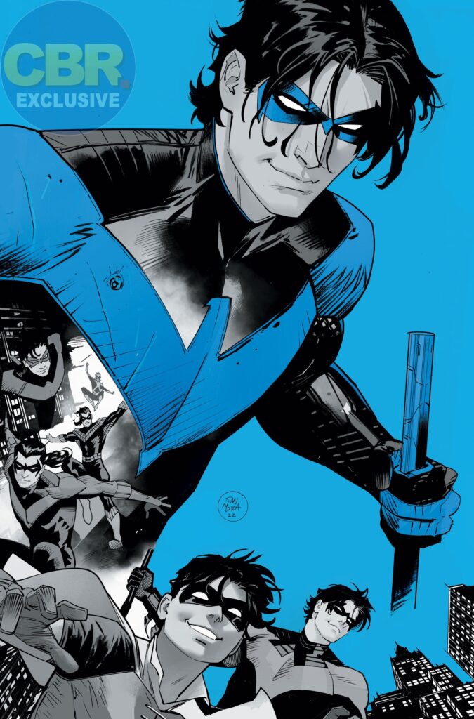 I disegni sono di Babs Tarr, Bruno Redondo, Dan Mora, Jamal Campbell, Javier Fernandez, Jorge Fornes, Jorge Jiménez e Travis Moore. La copertina principale del numero, creata da Redondo, mostra Nightwing/Dick Grayson alla testa della Bat Family, dei Titani, dei membri della Justice League e di altri eroi provenienti da ogni angolo dell’Universo DC. Allo stesso modo, una copertina recentemente pubblicata per Dark Crisis on Infinite Earths #7 mostra Dick al centro di un Universo DC appena formato, suggerendo ulteriormente la possibile posizione del personaggio come perno critico per il futuro dell’editore.