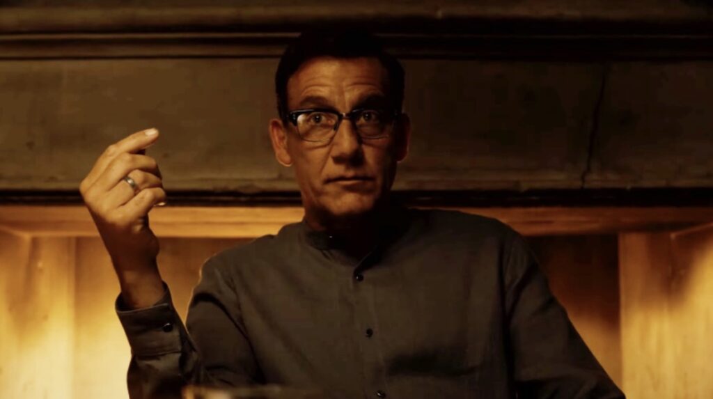 Le innate abilità investigative e tecnologiche, rendono Darby uno dei personaggi migliori della serie, scritto bene e interpretato magnificamente da Emma Corrin. Grazie a questo ruolo ha saputo dimostrare la sua versatilità nell’interpretare personaggi diversi (i più la ricorderanno per aver interpretato Lady Diana in The Crown) e arricchire i suoi ruoli con bravura e intelligenza. Oltre alla Corrin, però, in Murder at the end of the world abbiamo altri attori dalle grandi capacità. Uno su tutti è sicuramente Clive Owen, nei panni del miliardario Andy Ronson, un ruolo misterioso e carismatico con cui, grazie a un’occhiata, farebbe tremare il più temerario degli uomini. Insieme a lui, Harris Dickinson (Triangle of Sadness) nei panni di Bill, dimostra le sue capacità e si conferma essere uno dei giovani attori più promettenti della scena inglese. Tutti i personaggi hanno il loro fascino e possono vantare di una caratterizzazione degna di una serie del calibro di Murder at the end of the world.