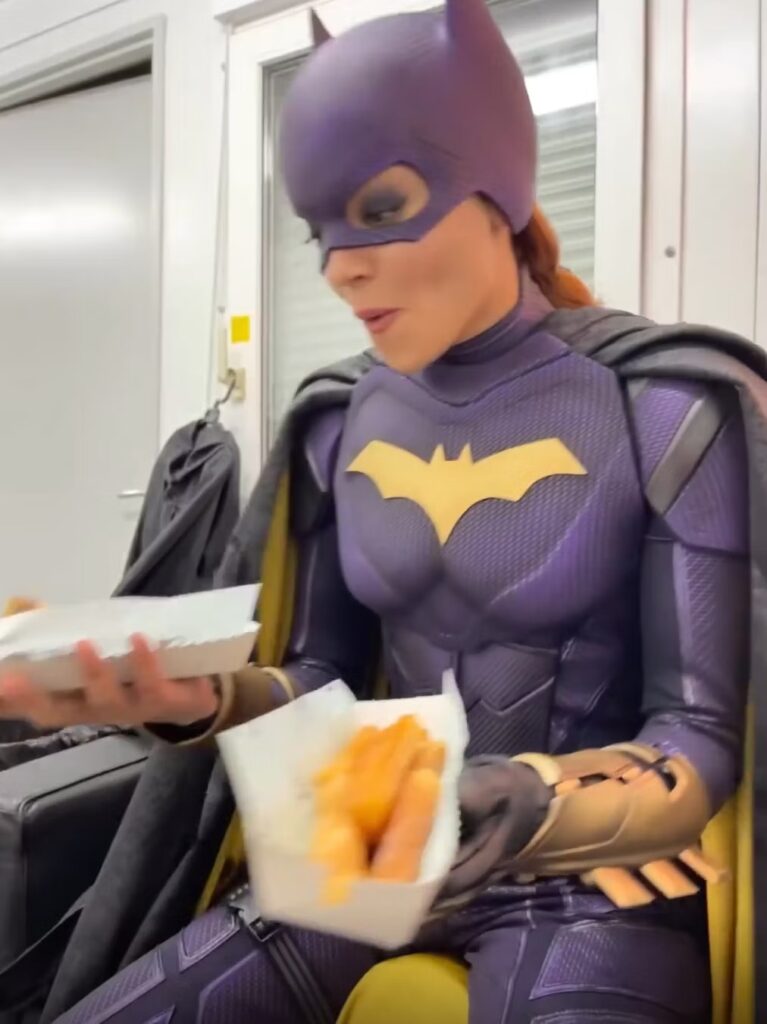 Come parte del video di fine anno di Grace su Instagram, l’attrice ha condiviso una breve clip che la ritrae in una roulotte, mentre gusta del cibo e indossa una tuta corazzata da Batgirl, che differisce in qualche modo dal design mostrato nel materiale di marketing rilasciato. La tuta comprende piastre di armatura, anziché una giacca di pelle con cerniera. Include anche guanti d’oro e finiture viola.