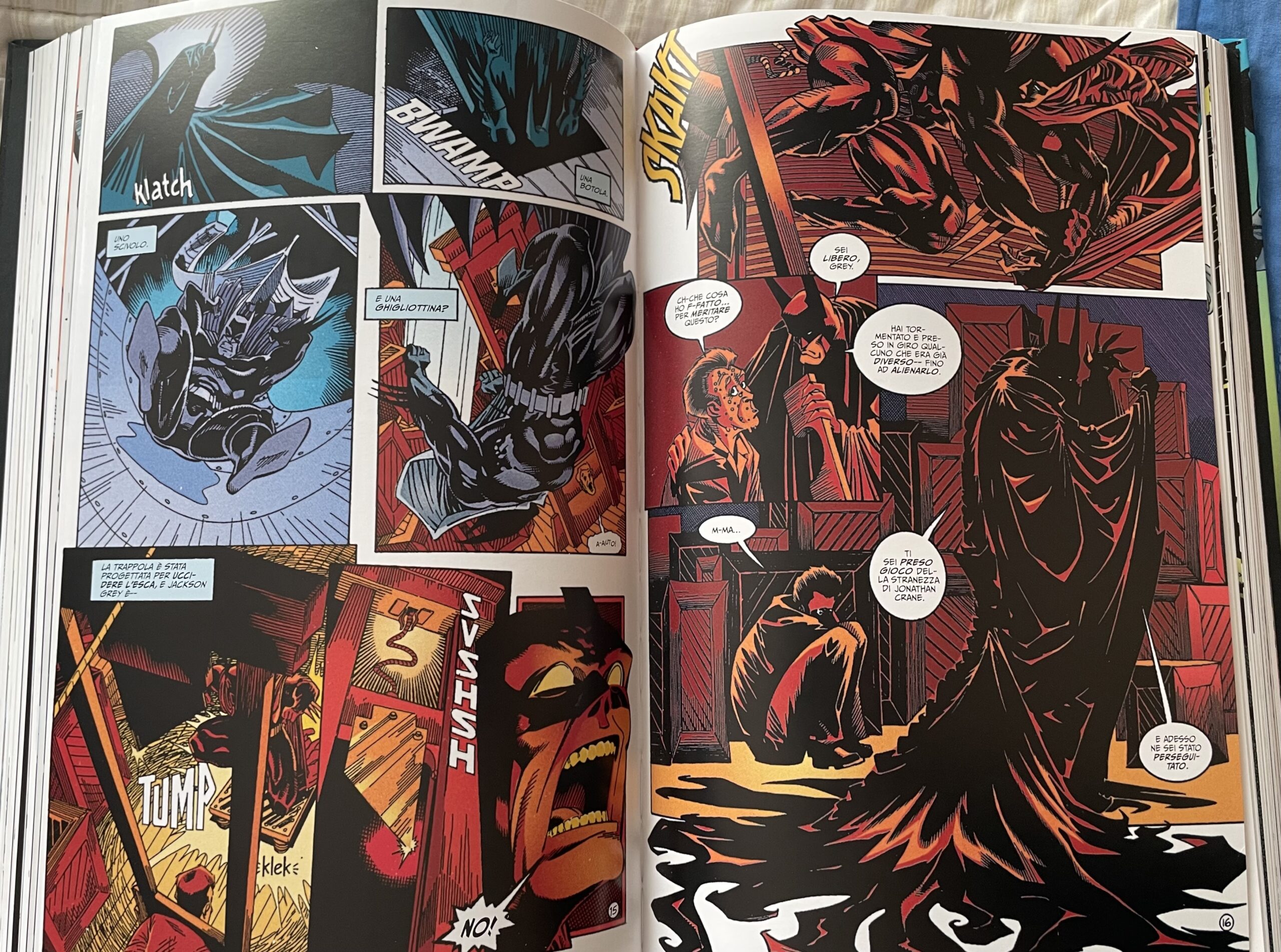 A loro volta, i nemici scelti dal team creativo sembrano ideali per esaltare ancora di più i temi trattati e lo stile del disegnatore. Sono spesso i villain più mostruosi, che sia per l’aspetto o per le motivazioni, e i confronti con il vigilante danno vita a interessanti discussioni. Ad esempio, la storyline con Killer Croc metterà Batman di fronte a un dilemma importante e a una scelta non facile, ma che ci mostra ancora una volta il suo lato più umano. Allo stesso modo, vengono messe in risalto le similitudini tra il Crociato Incappucciato e Lo Spaventapasseri. Entrambi usano la paura come una loro arma, ma in maniera diversa. Batman lo fa puntando sulla superstizione, su un’aura di mistero, mentre la paura di Crane è indotta chimicamente. Per il villain, il confronto con Batman rappresenta quindi una sfida continua per decretare chi è davvero il Re della paura.