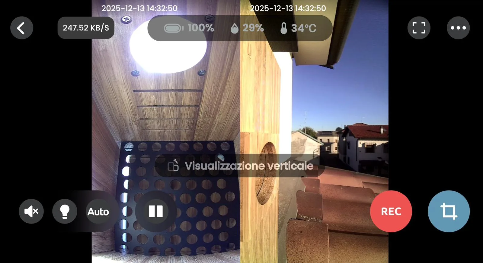 Qui il Nest Duo dà il meglio di sé. Il sistema integra due videocamere in Full HD 1080p (interna ed esterna), entrambe ottimizzate per registrare con chiarezza movimenti, nidificazione e attività quotidiane, anche in condizioni di luce scarsa grazie alla visione notturna a infrarossi.
