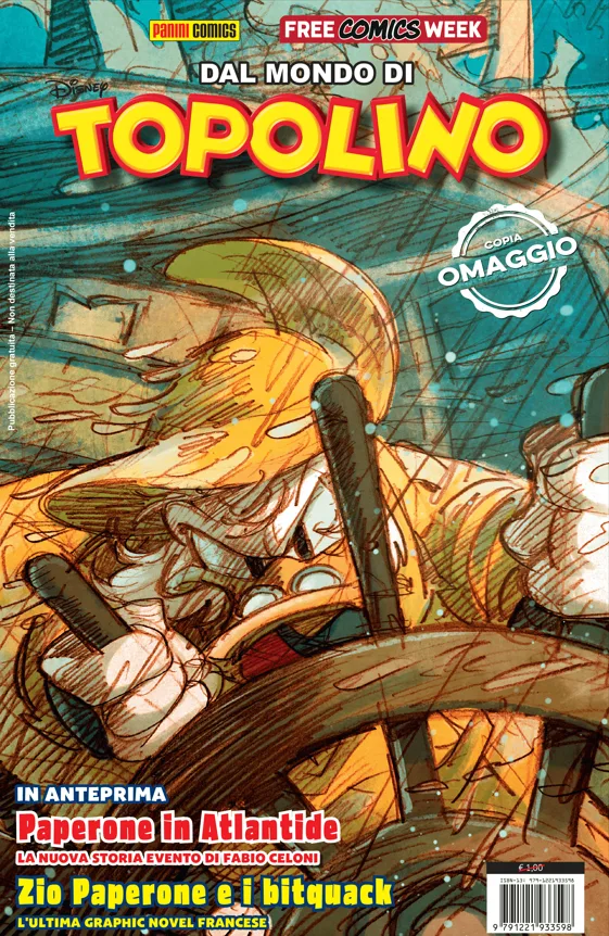 In questo albo i lettori avranno l’occasione di scoprire le prime tavole di due attesissime storie Disney in arrivo nei prossimi mesi. La prima, Paperone in Atlantide scritta e disegnata daFabio Celoni, qui presentata con le tavole del prologo a matita e colore e arriverà in versione definitiva su Topolino 3660, in uscita il 14 gennaio. La seconda è Zio Paperone e i bitquack, avventura firmata da Jul e Keramidas, ricca di satira, azione e divertimento, che sarà pubblicata nel volume Disney Collection 20 in uscita il 22 gennaio.