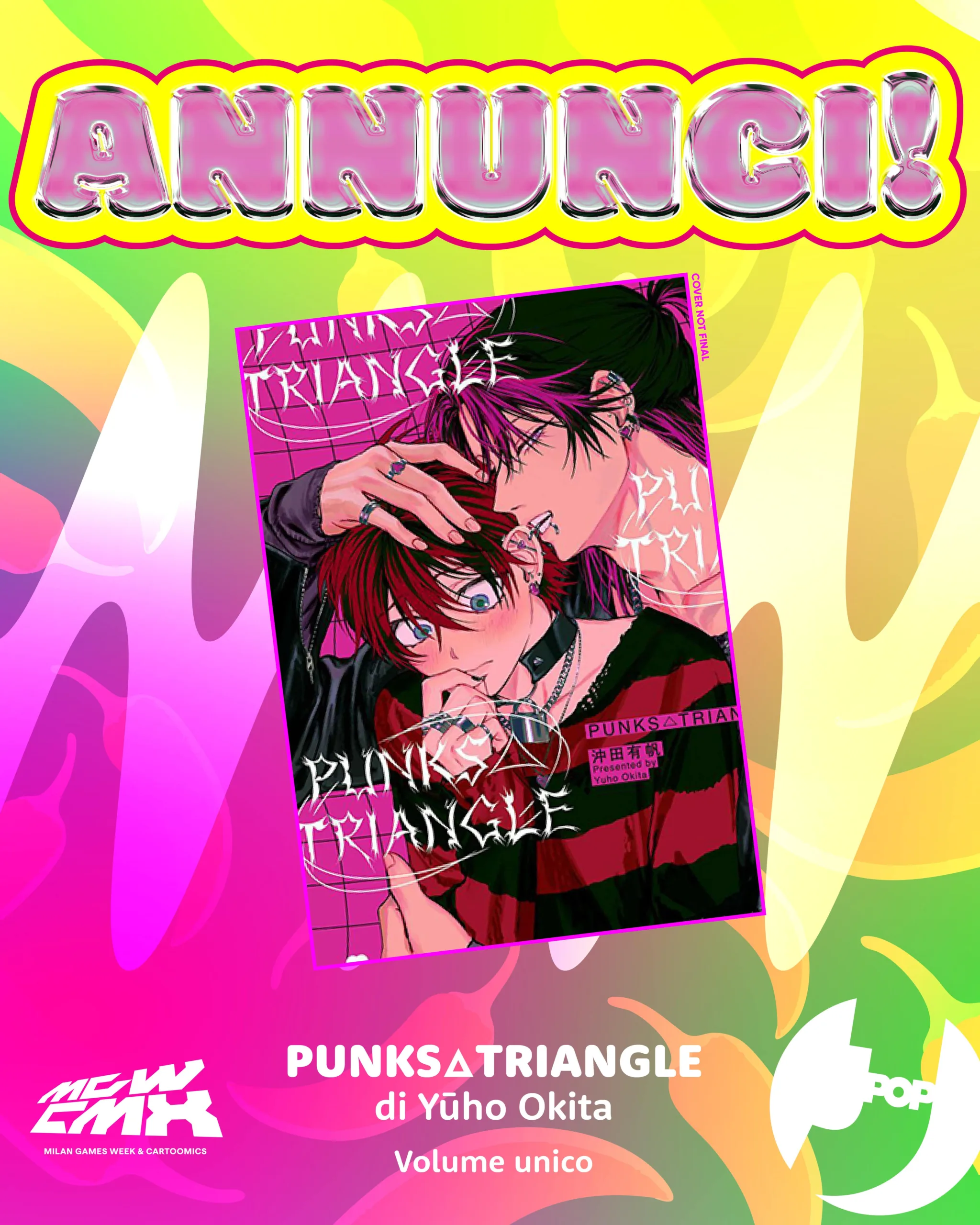 Il secondo giorno di Milan Games Week & Cartoomics dal Multiverse Stage, al termine del panel “Danmei, Manhwa, Manga: geografi e Boy’s Love contemporaneo”, J-POP Manga fa un secondo giro di annunci! Tre titoli decisamente hot che faranno impazzire gli appassionati di BL: Afterglow, Punks Triangle e l’attesissimo sequel Punks Triangle Stitch.