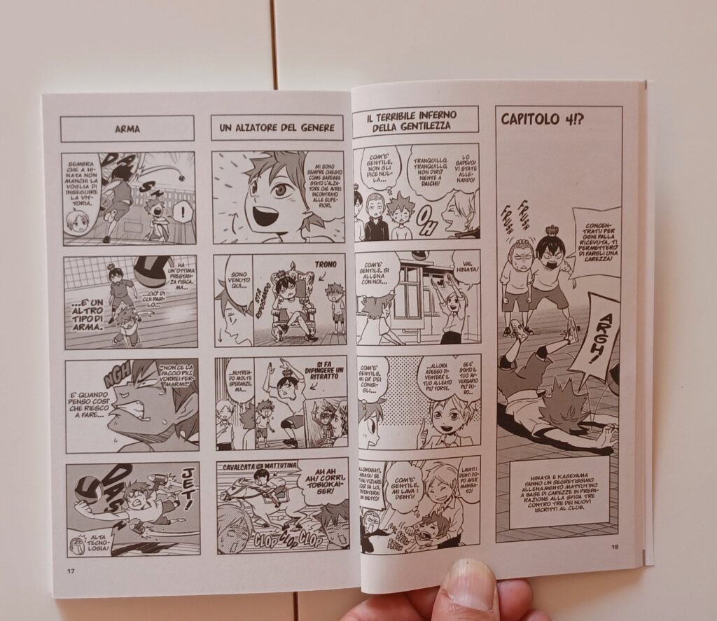 I disegni sono molto semplici e con gli sfondi praticamente inesistenti, ma funzionano alla grande su un manga di questo genere in cui vengono messe in risalto le espressioni dei nostri protagonisti e le parti divertenti della scena. In conclusione, e mi scuso per la breve recensione ma c’è veramente poco da dire se non che, se siete fan di Haikiuu o se semplicemente cercate un manga sportivo, semplice e super divertente Let’s Haikyuu è il manga che fa per voi, io mi sono proprio divertito nel leggere questo primo volume, forse il rischio è che con l’andare avanti dei volumi la cosa possa diventare sempre meno divertente ma sinceramente spero di no e spero che questo manga sappia tenere alto il divertimento senza cadere nella monotonia.