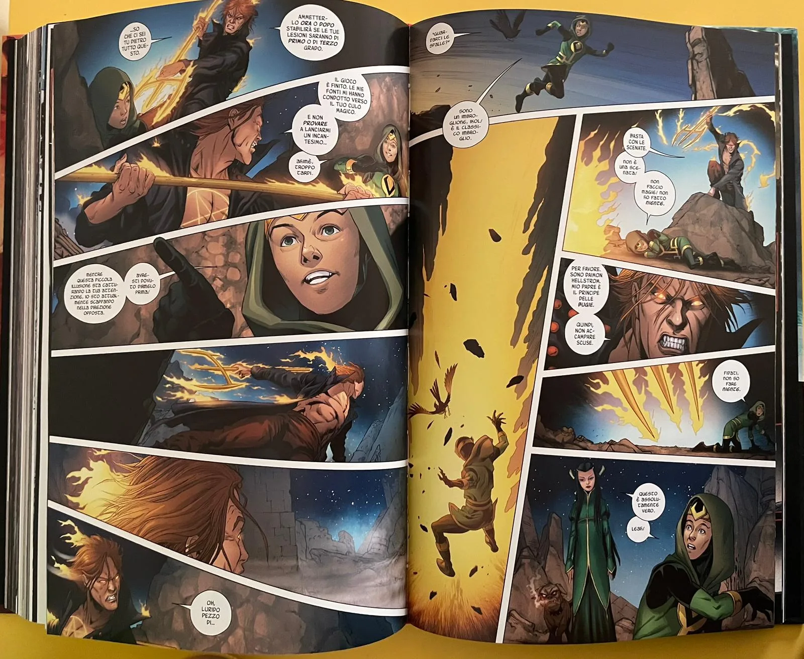 Dal punto di vista grafico, sono molti i disegnatori che accompagnano Kieron Gillen in questa grande avventura: Doug Braithwaite, Pasqual Ferry, Richard Elson, Whilce Portacio, Mitch Breitweiser, Jamie McKelvie. Stili diversi che si intervallano nel corso di tutto il volume e che forse non potranno sempre piacere ai lettori, come il tratto tipicamente anni ’90 e piuttosto spigoloso di Whilce Portacio. In generale, l’aspetto da ragazzo del protagonista aiuta sicuramente a empatizzare con lui e permette anche di svecchiarlo e di renderlo più fresco per i nuovi lettori. Nel corso della sua storia editoriale, il Dio degli Inganni ha cambiato più volte aspetto e questa versione adolescenziale è stata poi utilizzata per diverso tempo, compresa l’ottima serie Young Avengers del 2013, sempre di Kieron Gillen e di Jamie McKelvie, che vi invitiamo a recuperare. Non ci resta che attendere il secondo volume per vedere come si concluderanno le avventure del giovane Loki!