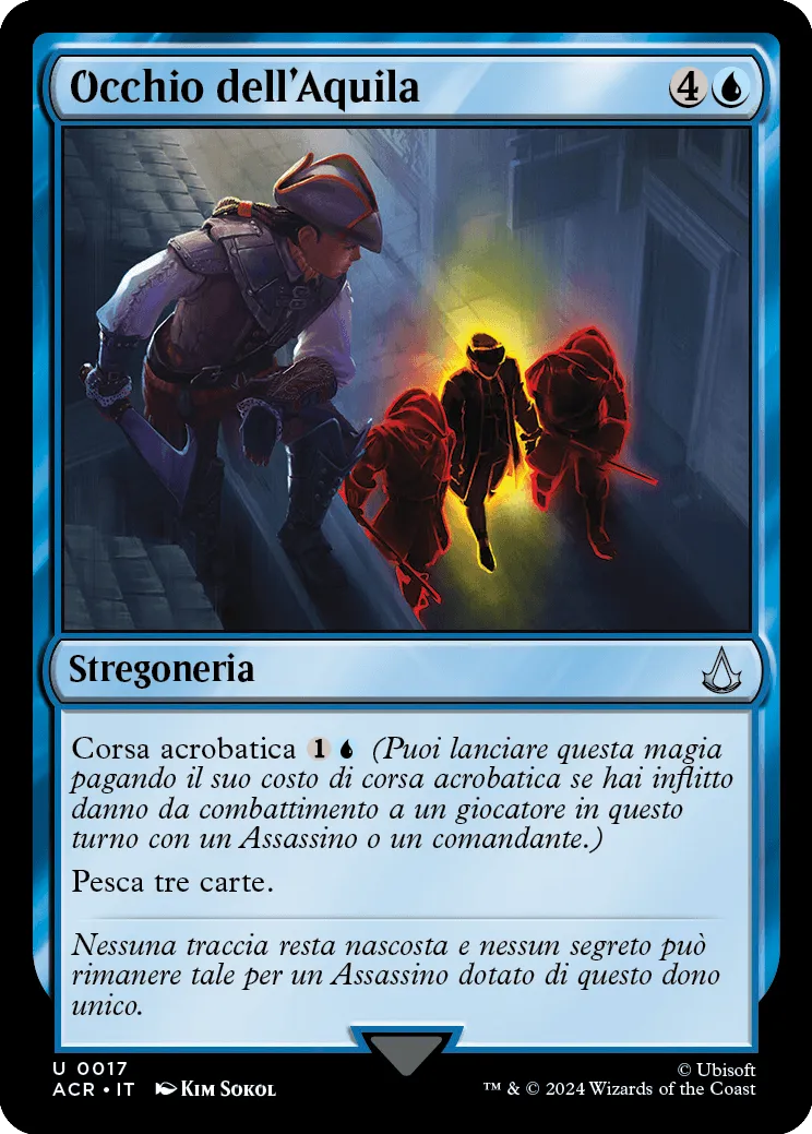 Nessun assassinio è veramente completo finché non fugge in modo spettacolare, saltando agilmente su e giù per edifici e qualsiasi altro ostacolo che intralci il suo cammino. Corsa acrobatica è un nuovo costo alternativo che ti permette di lanciare magie risparmiando un po’ se prima nel turno un assassino che controllavi o un comandante che controllavi hanno inflitto danno da combattimento a un giocatore.