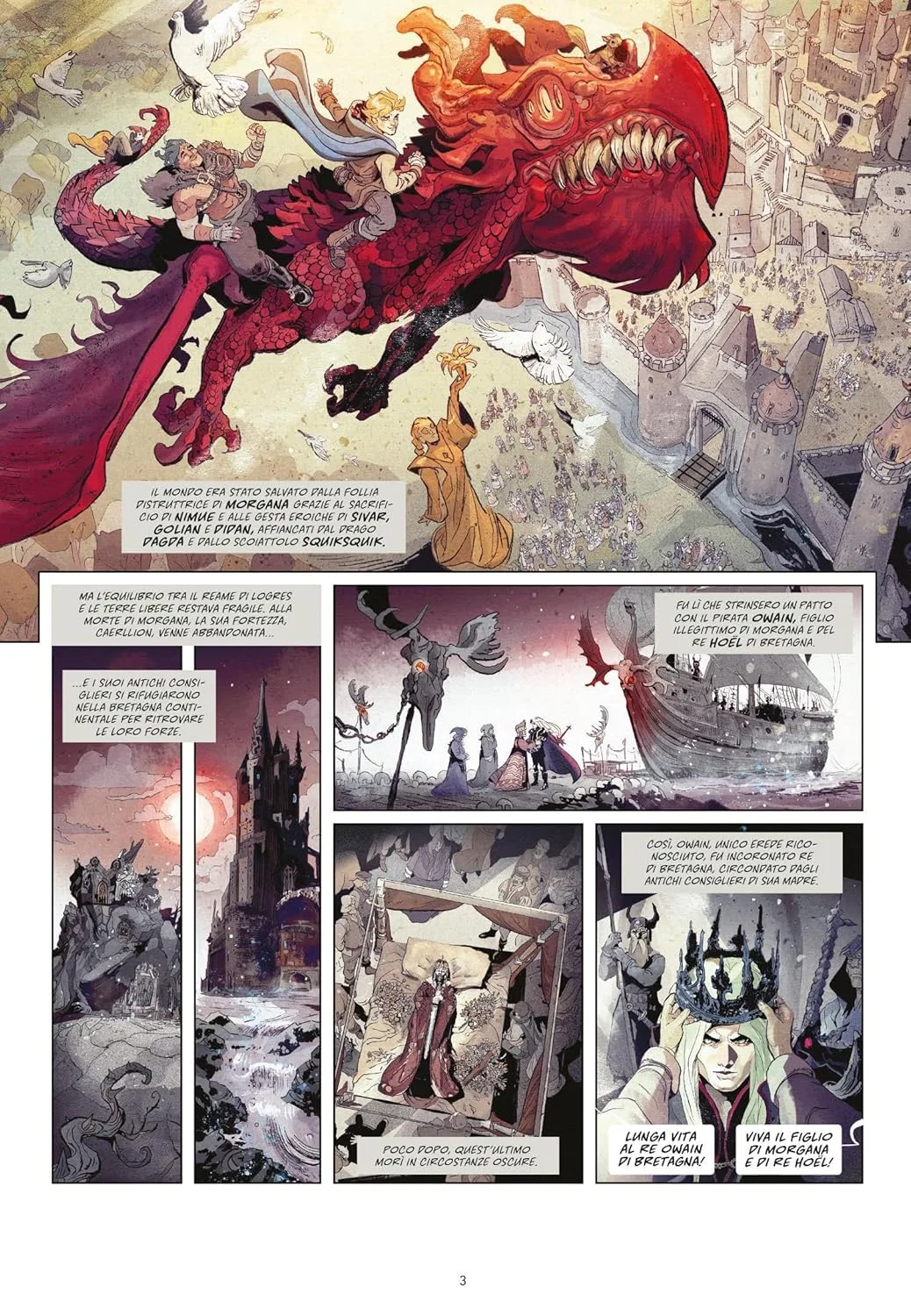 La tournée del primo volume ci ha portato in giro per il mondo. Partendo dalla Francia siamo arrivati in Brasile, io sono andato a Hong Kong, però in particolare in una delle tappe francesi in Bretagna siamo stati ospiti del Centro dell’Immaginario Arturiano, che è un museo in Bretagna disperso nella Foresta di Brocéliande. Un posto magico in cui c’è un museo istituzionale che però in qualche modo è localizzato in un posto mitico, tutto ciò che gira intorno e fuori dal museo è fatto da persone che credono veramente in queste leggende e che le sentono come proprie. Tutta la popolazione del luogo crede e sviluppa questi miti ancora nel presente. Questa cosa ha fatto sì che abbiamo potuto partecipare a delle attività magiche in qualche modo, per esempio il sindaco è stato nostra guida e ci ha mostrato la sedia dove Merlino si è seduto nella foresta, l’albero dorato, e tanto altro…è stata un’esperienza veramente magica e abbiamo cercato di riportare tutto ciò nell’ambientazione del secondo volume, che presenta anche dei riferimenti alle persone che abbiamo incontrato nelle creature magiche, che spero si riconoscano nel nostro viaggio, che diventa un po’ il viaggio degli eroi del fumetto. Io ho avuto anche l’onore di ricevere la cittadinanza.