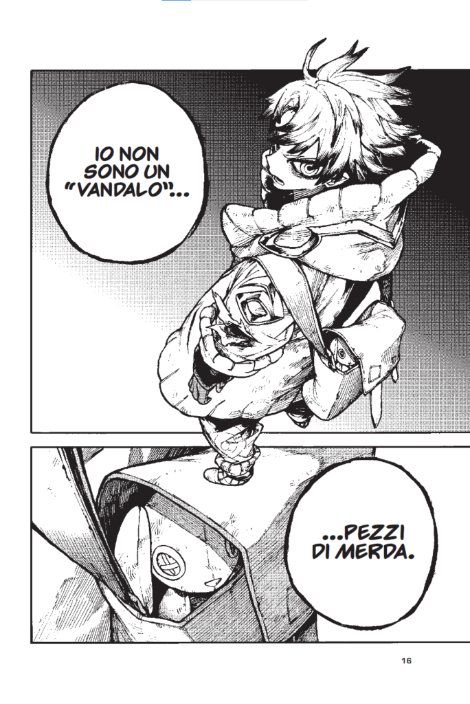 Alla trama impregnata di tematiche così importanti e rielaborate in modo personale si aggiunge un comparto artistico di forte impatto, espressivo, con un tratto “sporco” ma prorompente secondo i dettami del graffitismo: non è un caso se GACHIAKUTA si avvale anche del lavoro di Hideyoshi Andou, graffiti designer essenziale per l’identità artistica così spiccata del titolo, in grado di imporsi con prepotenza anche in un panorama così affollato come quello del manga giapponese di questi anni.