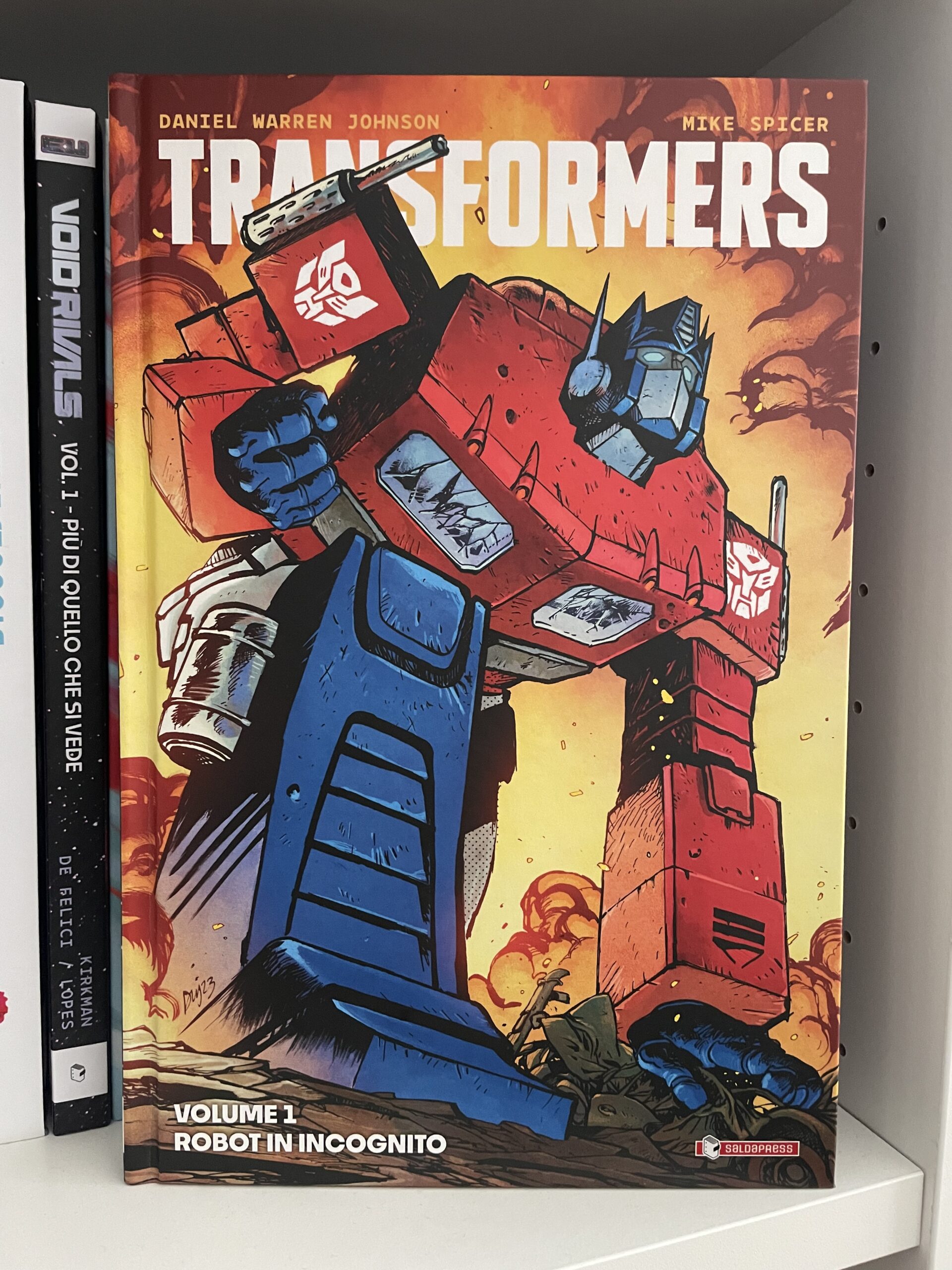 Dopo avervi presentato il primo volume di Void Rivals, continuiamo a esplorare l’Energon Universe con la serie che finora ha riscosso il successo maggiore in patria. Pubblicata da Image Comics e fresca vincitrice di ben due Eisner Awards (miglior serie, miglior artista completo), Transformers di Daniel Warren Johnson, con i colori di Mike Spicer, arriva in Italia per SaldaPress. Sei numeri che ci introducono a una nuova guerra tra Autobot e Decepticon, con tutti i personaggi che abbiamo sempre amato e qualche novità che rende la serie moderna e attuale per vecchi e nuovi fan.