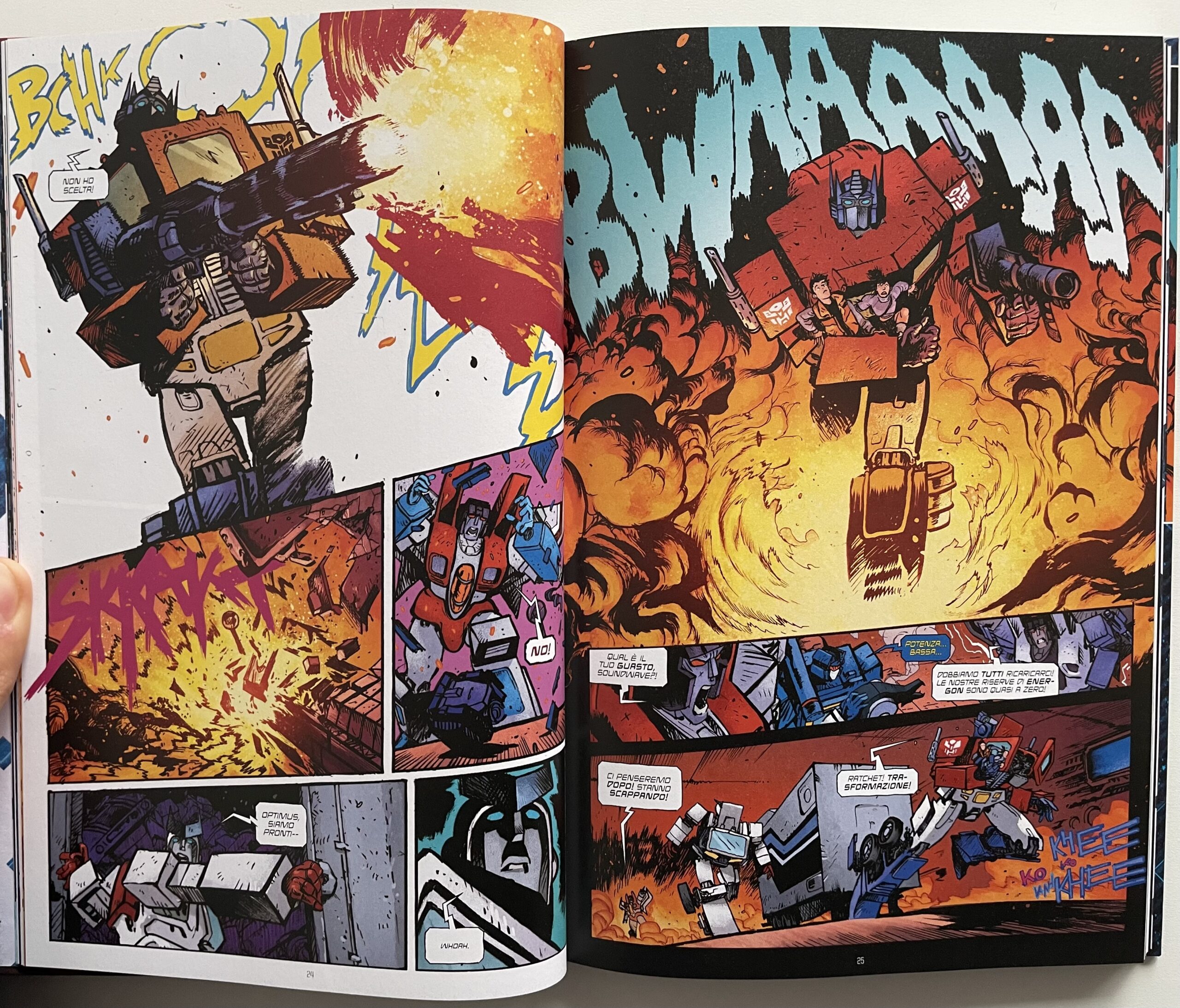 In veste di autore completo, Daniel Warren Johnson riesce a coniugare il lato più action della storia con un ottimo approfondimento psicologico. I Transformers sono come giocattoli nelle sue mani e gli scontri che li coinvolgono una gioia per gli occhi, grazie a tavole super dinamiche e combattimenti imprevedibili. Nei primi sei numeri non manca di certo l’azione, ma come già accennato resta grande spazio per i personaggi di ogni schieramento, ben delineati dall’autore e con i quali è facile entrare sin da subito in sintonia, che sia nel bene o nel male. Importante anche il contributo di Mike Spicer ai colori, già presente in tutte le altre opere del disegnatore e che compie ancora una volta un ottimo lavoro per esaltare il suo tratto e rispettare i canoni estetici dei Transformers che tutti e tutte ben conosciamo.